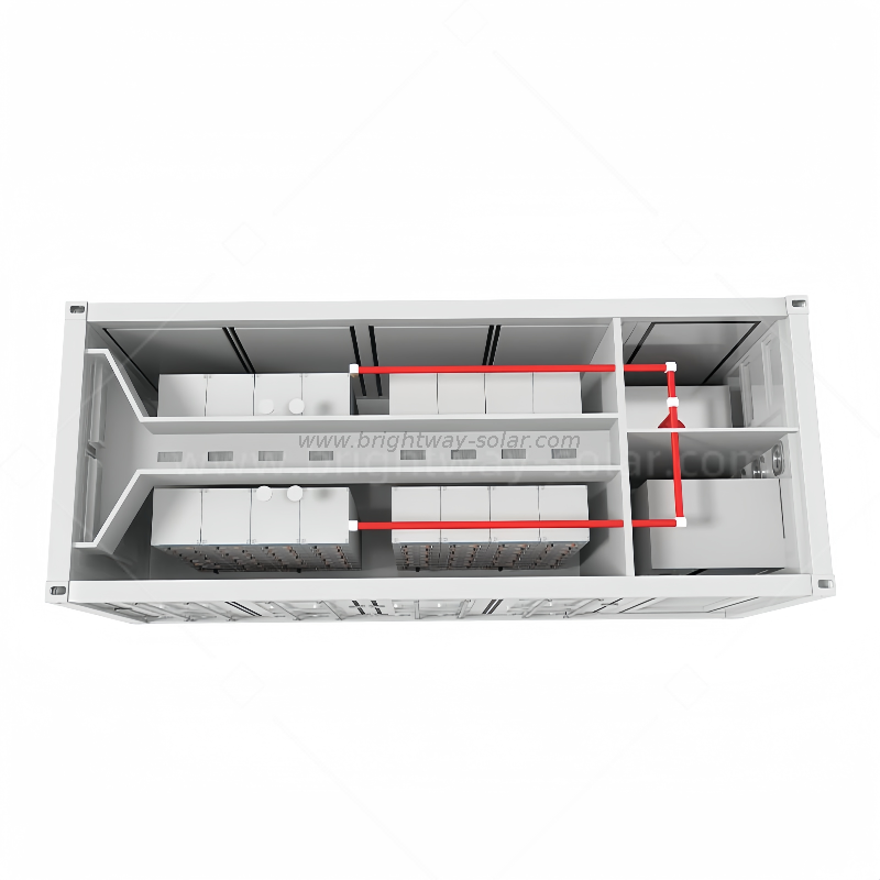 Le conteneur de 40 pieds de 40 kW / 1,106Wh de 40 pieds est conçu pour les projets de stockage commercial et industriel à grande échelle. Du côté DC, le système comprend huit unités d'énergie modulaire de batterie au lithium, chacune d'une capacité de 138 kWh. Tandis que du côté AC, il utilise les PC de la série solaire Brightway. Grâce à la stratégie d'opération EMS, il interagit avec le réseau d'une manière adaptée au réseau et fournit une prise en charge de l'énergie aux clients pendant les périodes d'alimentation limitée.